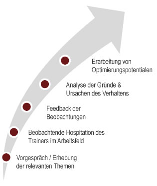 Es erfolgt eine Analyse der Stärken und Engpässe im Verhaltens- und Arbeitsbereich der Beteiligten und die konkrete Umsetzung erarbeiteter Erkenntnisse |